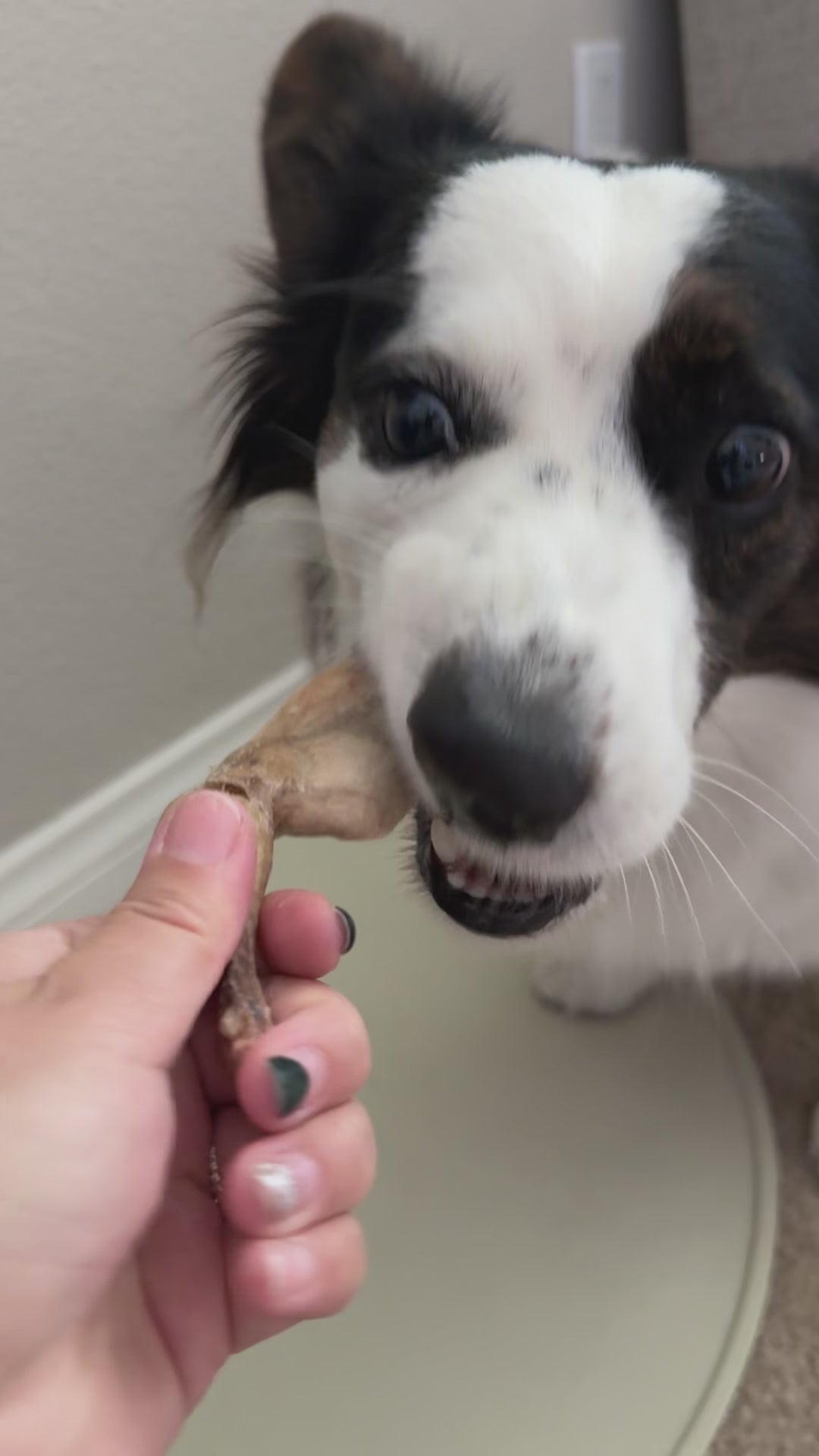 This product is freeze-dried to a very low moisture level, allowing the bones to become light and brittle rather than hard, resulting in an easy-to-break, crispy texture.